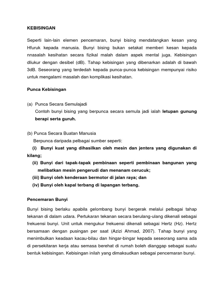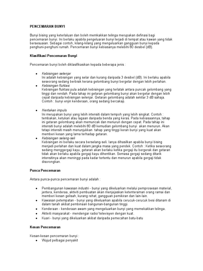 Contoh Karangan B Pencemaran Bunyi